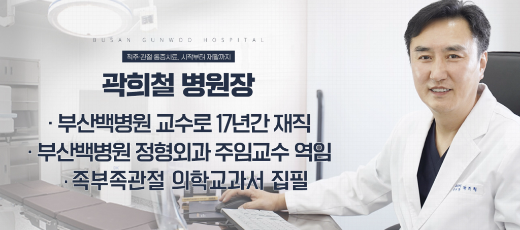 곽희철 병원장은 인제대학교 부산백병원 정형외과 주임교수를 역임하였으며, 미국 듀크대학교 족부족관절센터에서 교환교수로 활동한 경력을 보유하고 있습니다. 또한, 족부족관절 의학교과서 집필에 참여하였고, 7,000례 이상의 수술 경험을 통해 전문성을 인정받고 있습니다.